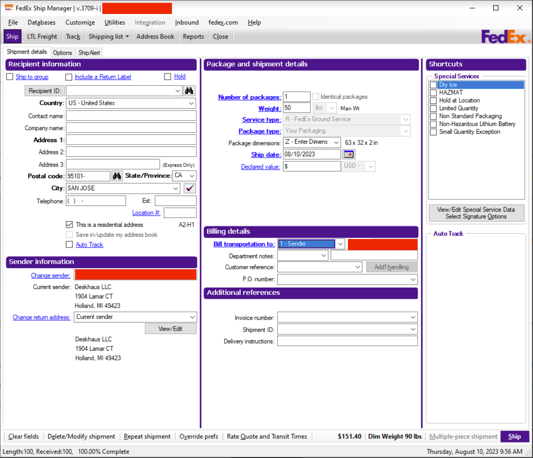We are charging California shipping ($151.40) + repack cost (~$25).